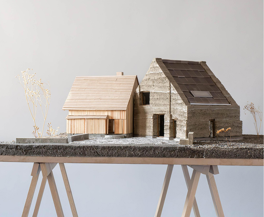 Es entstanden 3 Häuser in 3 unterschiedlichen Baustoffen: Beton, Holz und Ziegel.