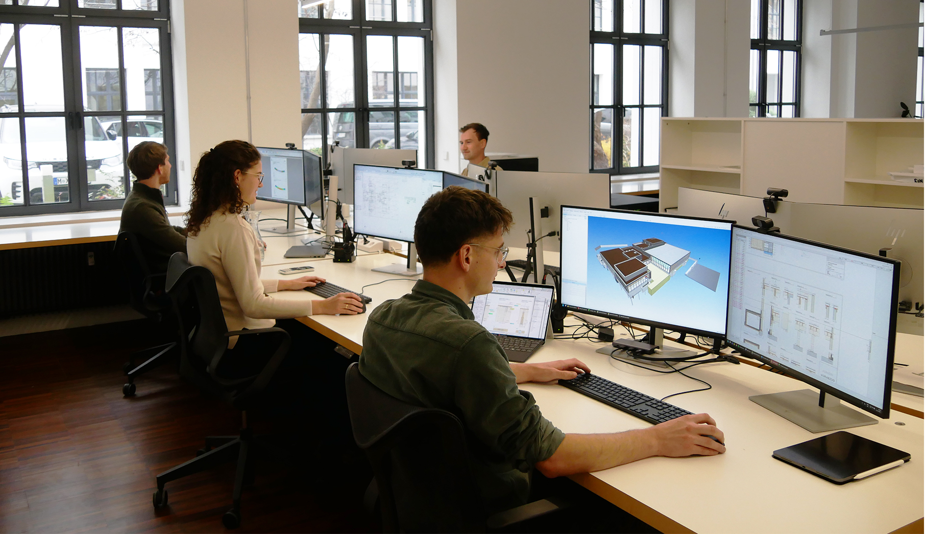 Die zentrale Lage ermöglicht eine bequeme Anfahrt auch ohne Auto. Wir teilen unsere Büroräume mit einem Architektur- sowie einem Brandschutzbüro, wodurch der fachliche Austausch gefördert wird. Gemeinsame Aktivitäten in der Umgebung stärken das offene, kollegiale Miteinander und tragen zu einer produktiven Arbeitsatmosphäre bei.